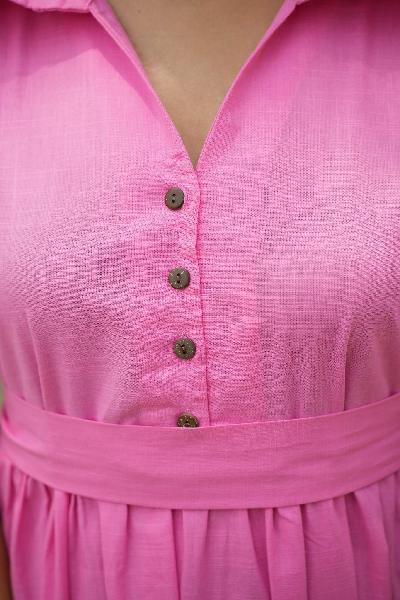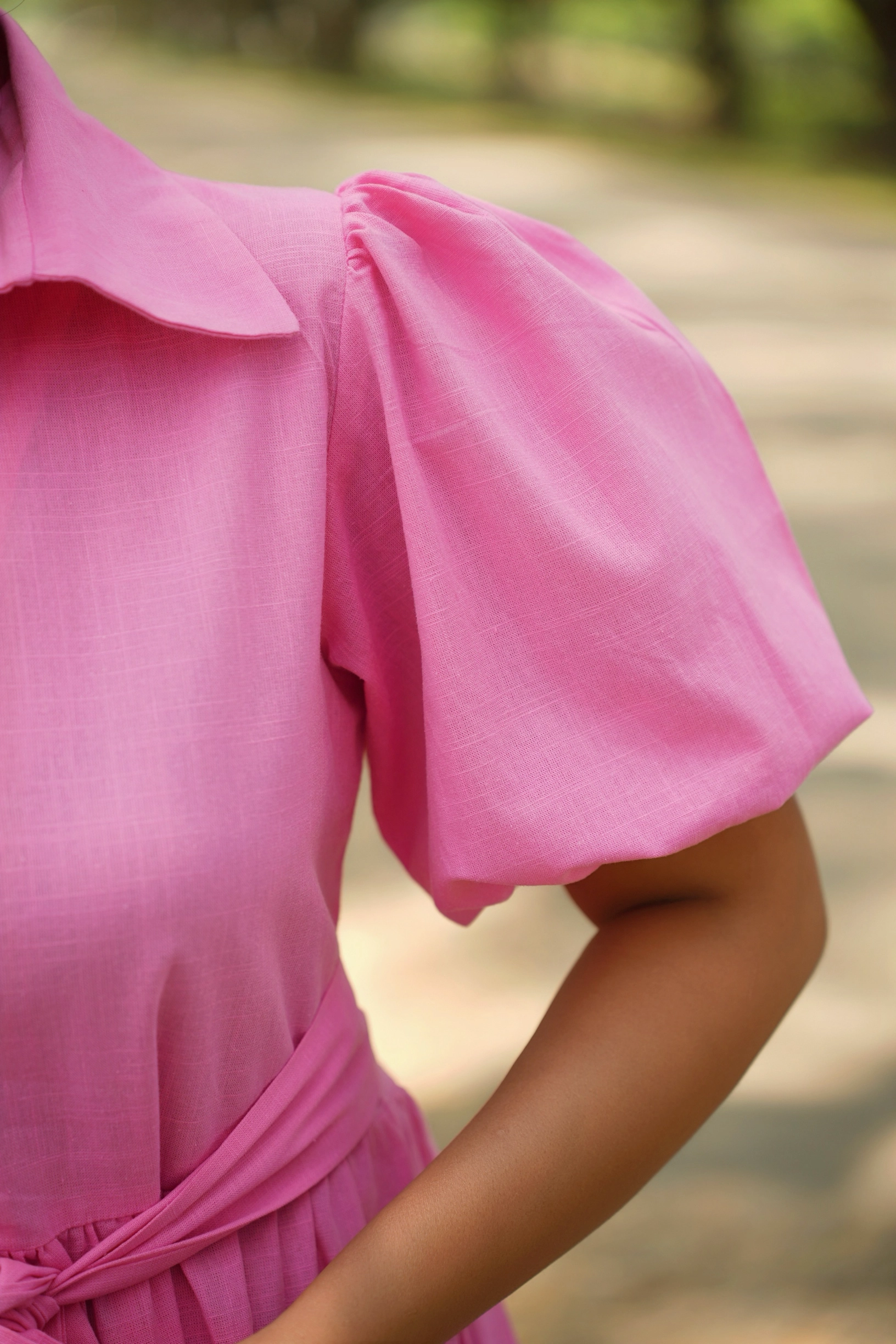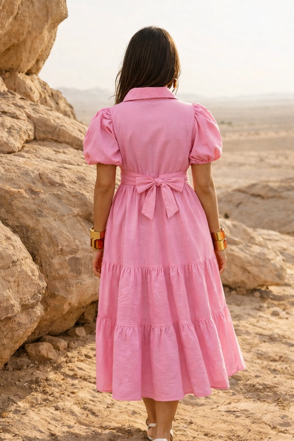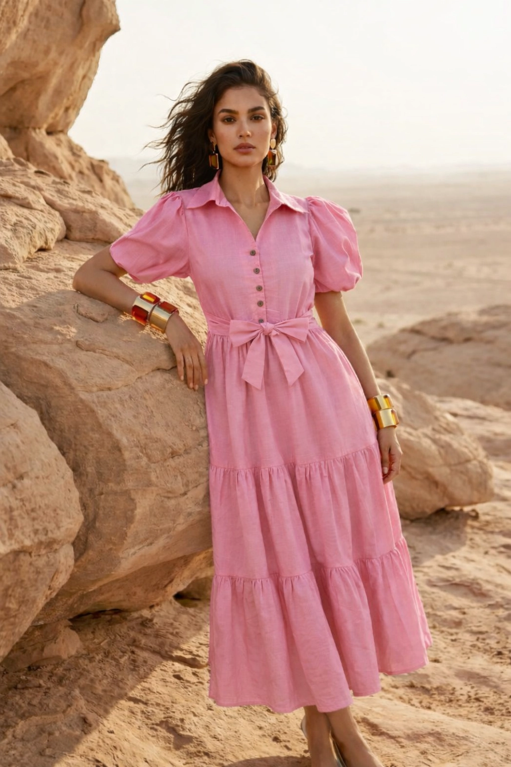 Soft, feminine, and effortlessly charming, the Alora Puff Sleeve Midi is designed to make a statement with grace. Featuring romantic puff sleeves and delicate front buttons, this dress blends classic elegance with a dreamy silhouette. The adjustable belt cinches the waist beautifully, creating a flattering shape while keeping the look light and graceful.