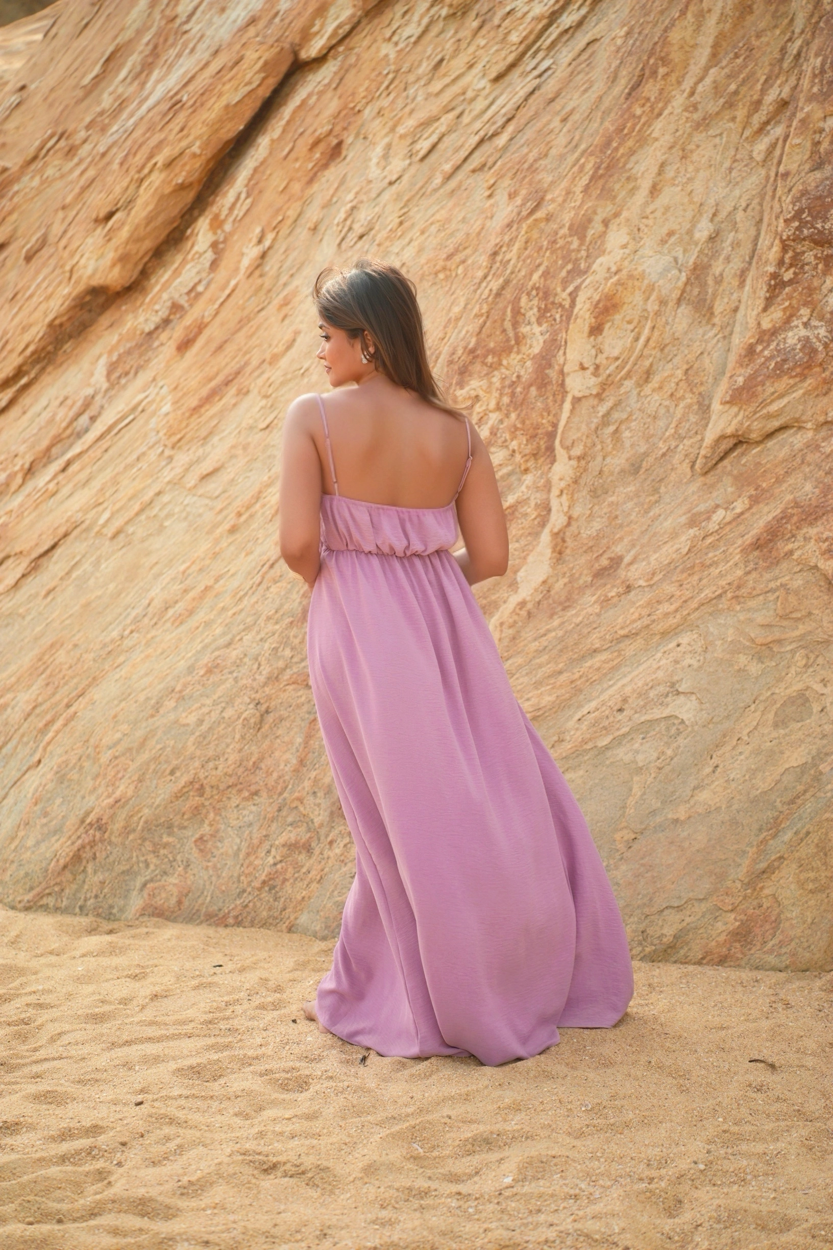 Soft, flowing, and effortlessly feminine. The Luna Maxi is designed with a flattering gathered waist and a discreet side zipper that creates a beautiful, natural silhouette. The delicate straps and airy length give it that relaxed, beachy elegance that moves gracefully with every step.